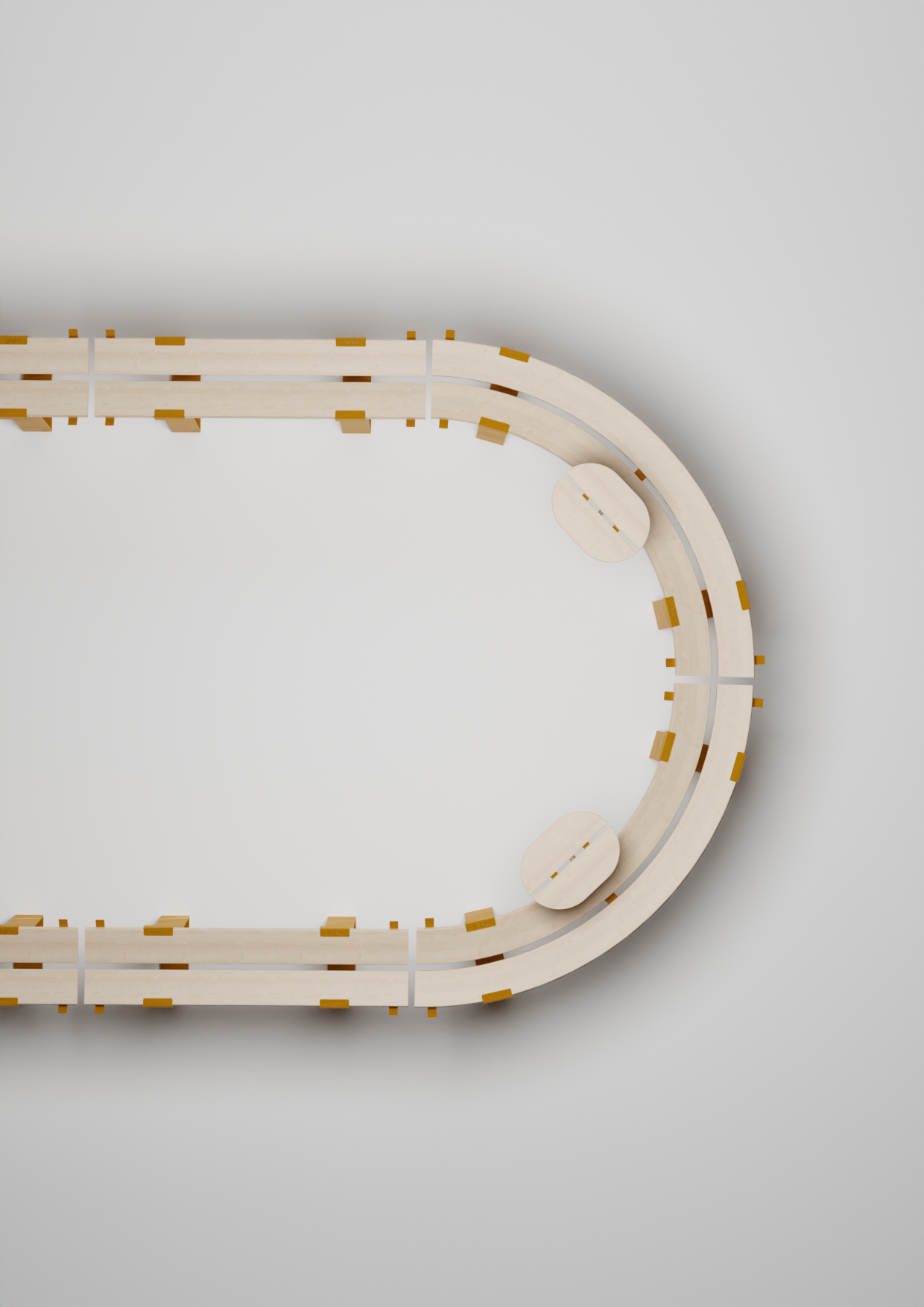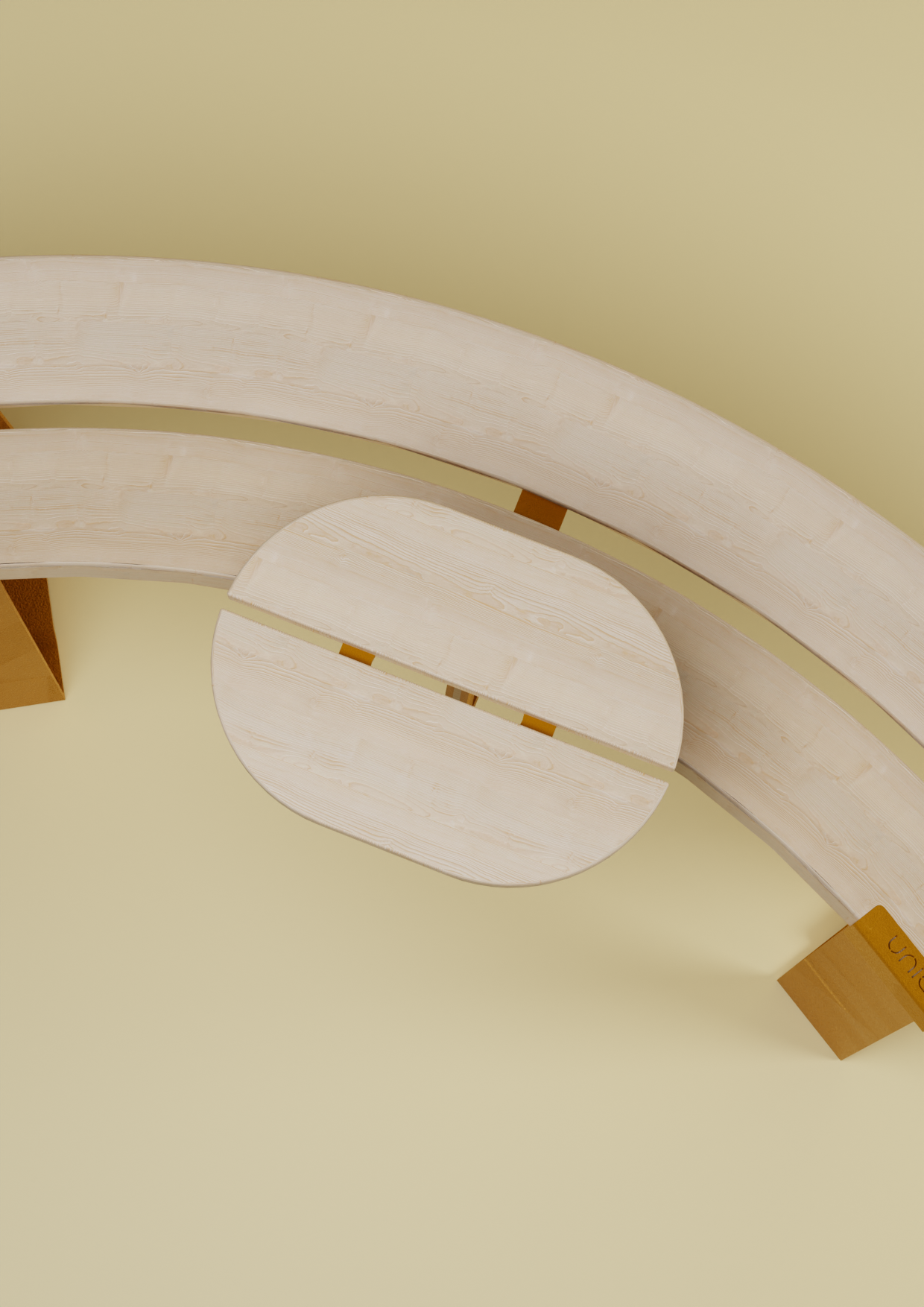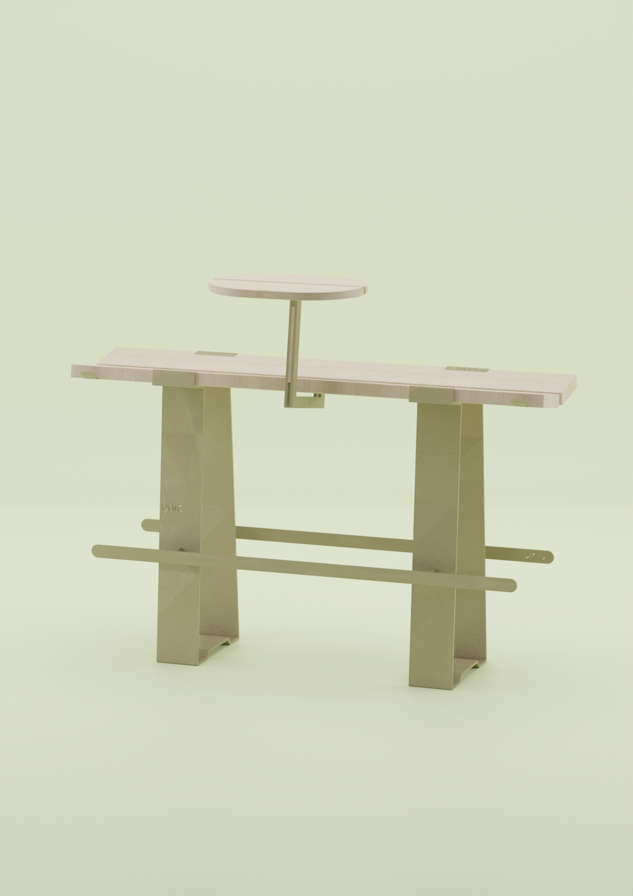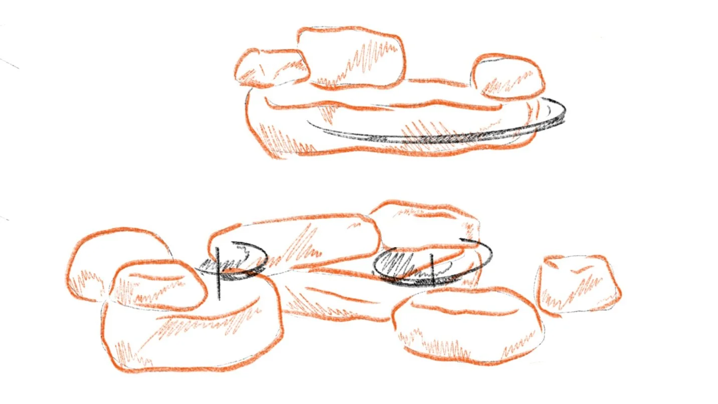 La idea de realizar bancos giratorios aportaba un mayor dinamismo a la propuesta, ligaba con el concepto ideado y satisfacía los requisitos técnicos establecidos. Gracias a su movimiento, los usuarios podían corregir su posición a su gusto, formando con los bancos una posición similar a la mesa de pícnic, dar la espalda a otros usuarios, generar un espacio acogedor para un grupo social mayor etc.