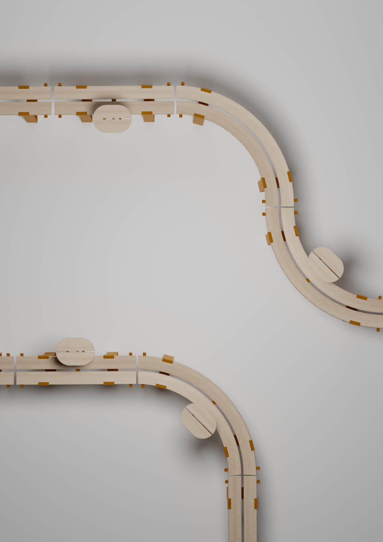 Mediante estos primeros bocetos, se buscaba desarrollar mobiliario que generase este efecto sobre los espacios abiertos, donde los usuarios pudiesen descansar a sus anchas sin importar a qué altura lo hacían. Esta propuesta se materializaba en extrusiones y plegados de aluminio, pero a pesar de su atractivo visual o interés conceptual, conservaba muchas de las carencias presentes en la mesa de pícnic.