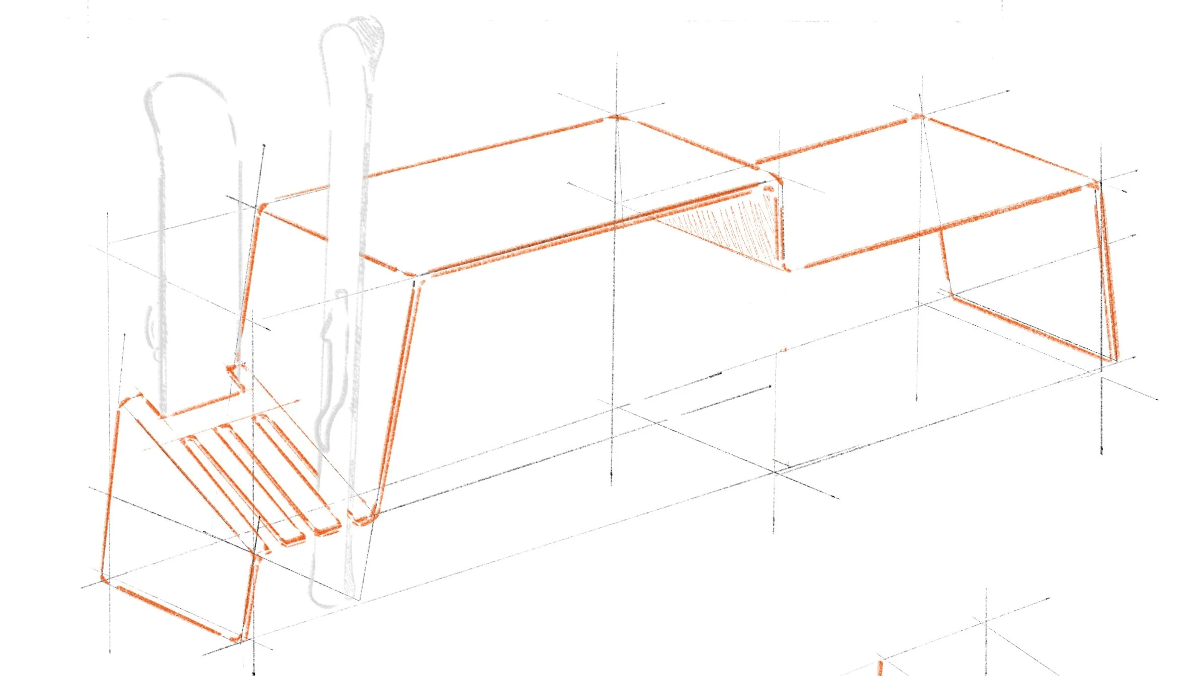 A raíz de esta propuesta, pude entender que el producto NO debía girar en torno a la mesa y la interacción con ella. Es decir, una gran mayoría de usuarios que frecuentan las montañas y estaciones de esquí, lo hacen por la actividad deportiva. Comer o realizar largos periodos de descanso sobre un espacio de ocio NO son la prioridad. Desde este punto de vista, el banco o asiento pasaría a ser la pieza de mobiliario principal a desarrollar, siendo la mesa un accesorio adicional.