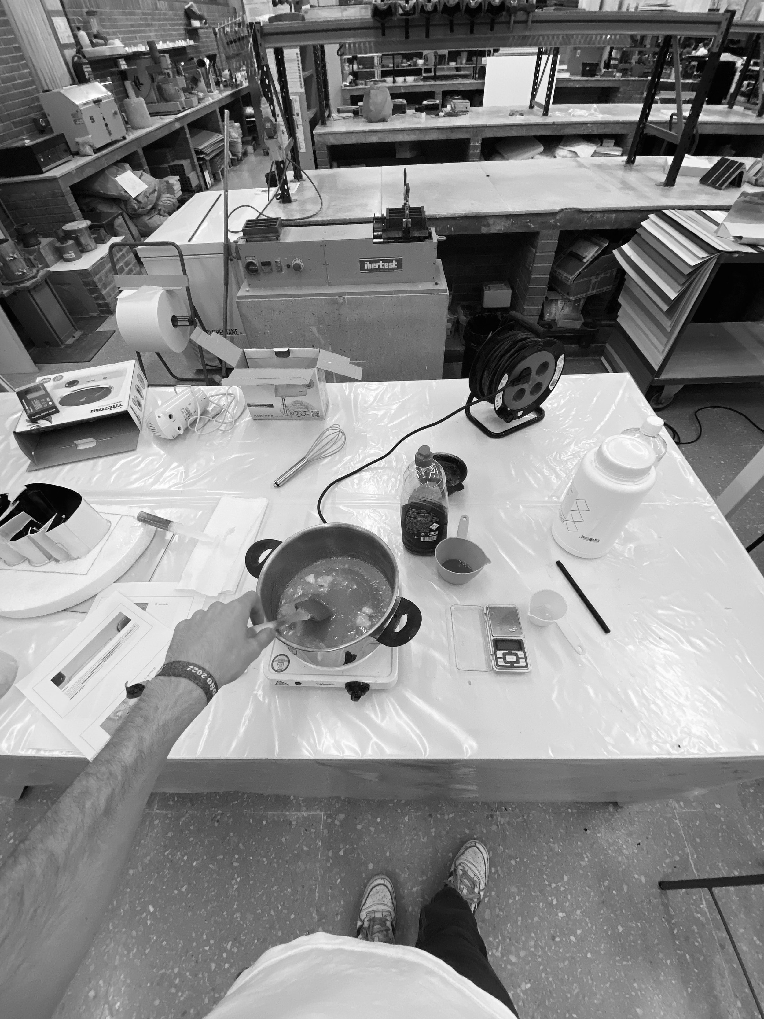 El uso de este biomaterial, permitía diseñar la suela a mi gusto y dependiendo de las cantidades de material que se utilizase [glicerina, gelatina, agua y jabón] su dureza y resistencia cambiaba, y así, sus propiedades.