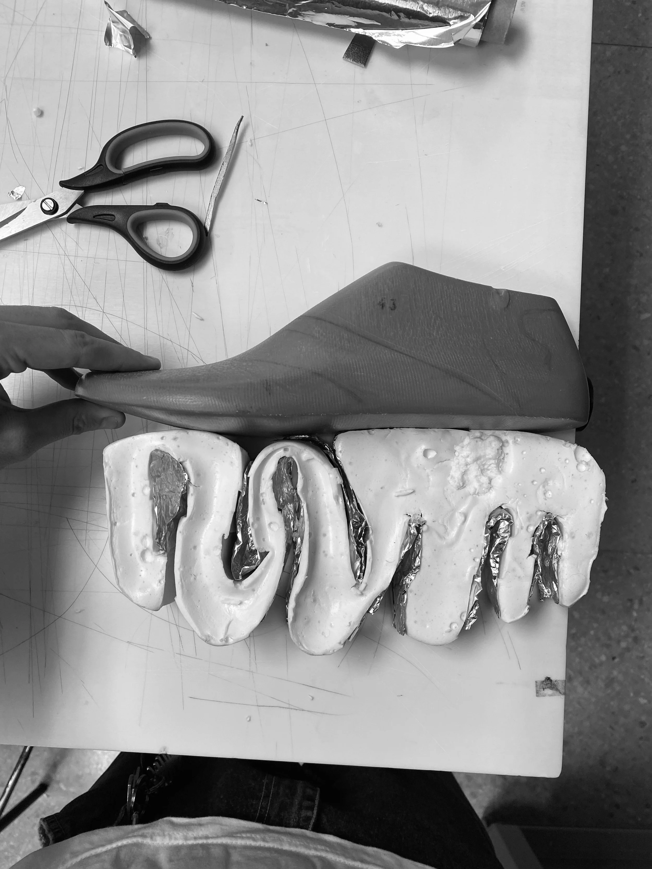 El uso de biomateriales en el proceso de creación de prototipos fue de gran ayuda. Se realizaron tres prototipos sobre un molde casero que simulaba diferentes suelas de zapatillas.
