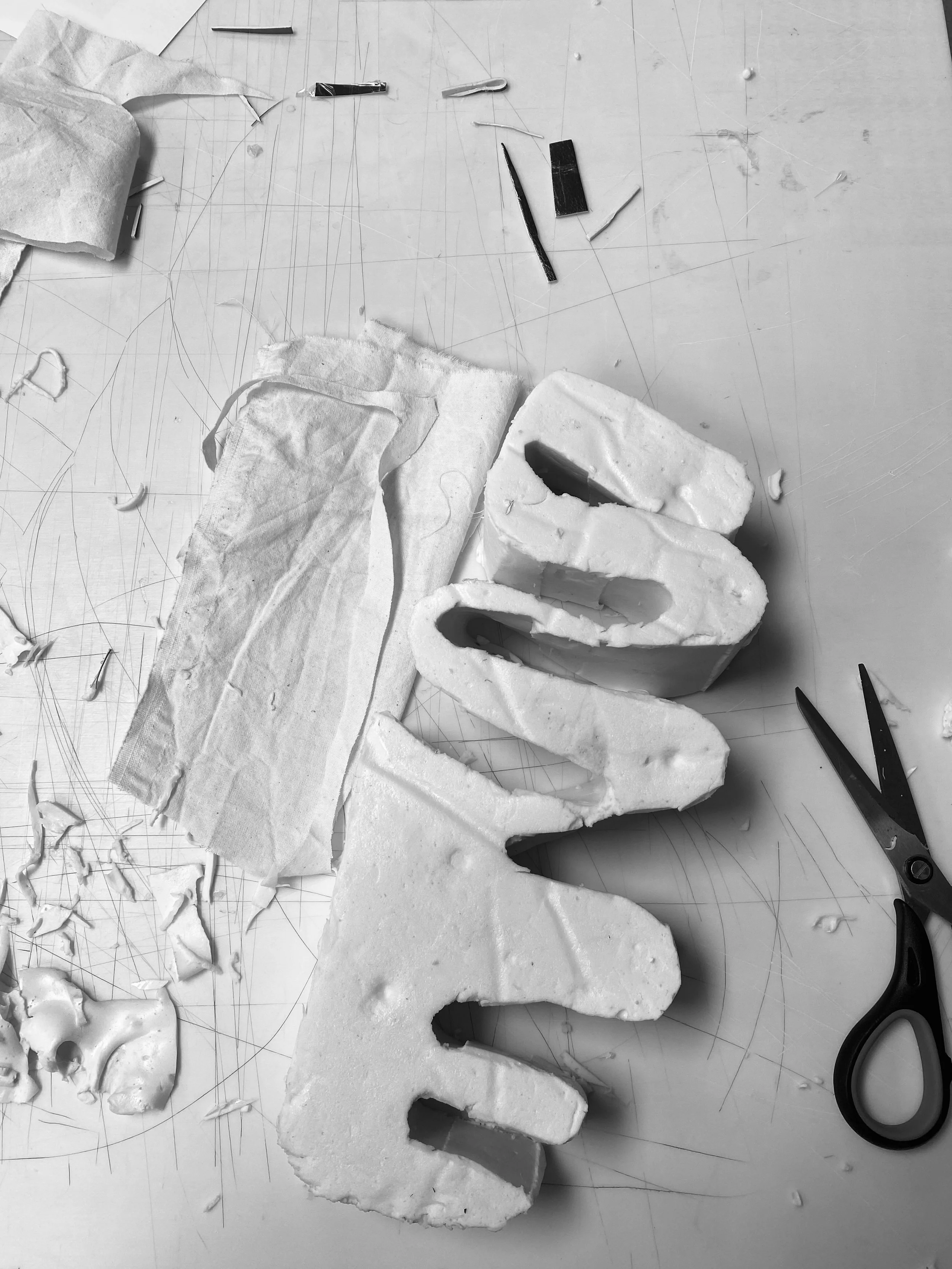 El proceso de creación de prototipos se ha basado en la experimentación con materiales que van desde el cartón, goma espuma, corchos o filamento 3D hasta biomateriales como la gelatina en polvo o la glicerina.